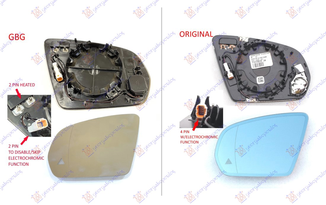 DOOR MIRROR GLASS HEATED (W/LED BLIS) (WOUT ELECTROCHROMIC FUNCTION) (2+2pin) (ASPHERICAL GLASS)