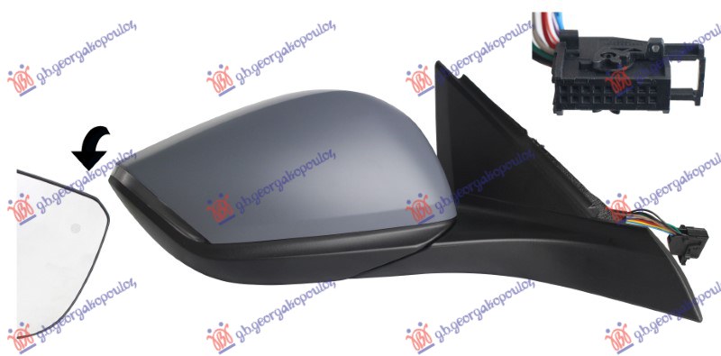 DOOR MIRROR ELECT. HEATED FOLD. PRIMED (W/LAMP LED & FOOT LAMP & BLIS & SENS.) (18H12P) (A QUALITY) (CONVEX GLASS)